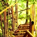 At 9:35AM, we started our trekking from Chikuu-Komagatake shrine. Crossing the suspention bridge over Ojiro-gawa river.